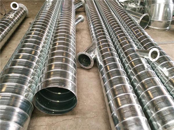 (1) 送風,包括通氣,如送鮮風和排氣,這個范圍很廣,如工廠車間,生產場地空氣,由于有害氣體產生需要排出室外,又需要把室外空氣輸送至室內。這時就要使用流量大而壓力小的空氣輸送管道,螺旋風管就最適用,一般情況下使用鍍鋅鐵管,有腐蝕性及特別潮濕場所使用不銹鋼管。